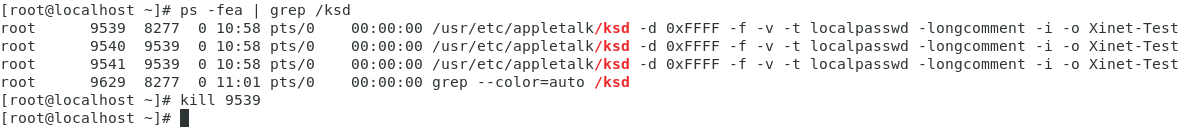 ps -eaf | grep /ksd to find the process id of the parent KSD process. Kill this process using the process id. Note that the process id is the same as reported on the second line of the picture in step 2.Click to open image in a new tab.